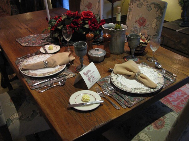 If you arrive early for dinner, there is time for a drink either on the deck if weather permits or in the Loch Ness Pub. Glenlaurel does not currently have a liquor permit (it’s on the ballot though so fingers crossed) which means that all drinks are BYO. I wish I had thought to pack some after-dinner scotch. We did enjoy a glass of Kinkead Ridge on the deck while watching deer in the woods and nibbling on the provided cheese and crackers.